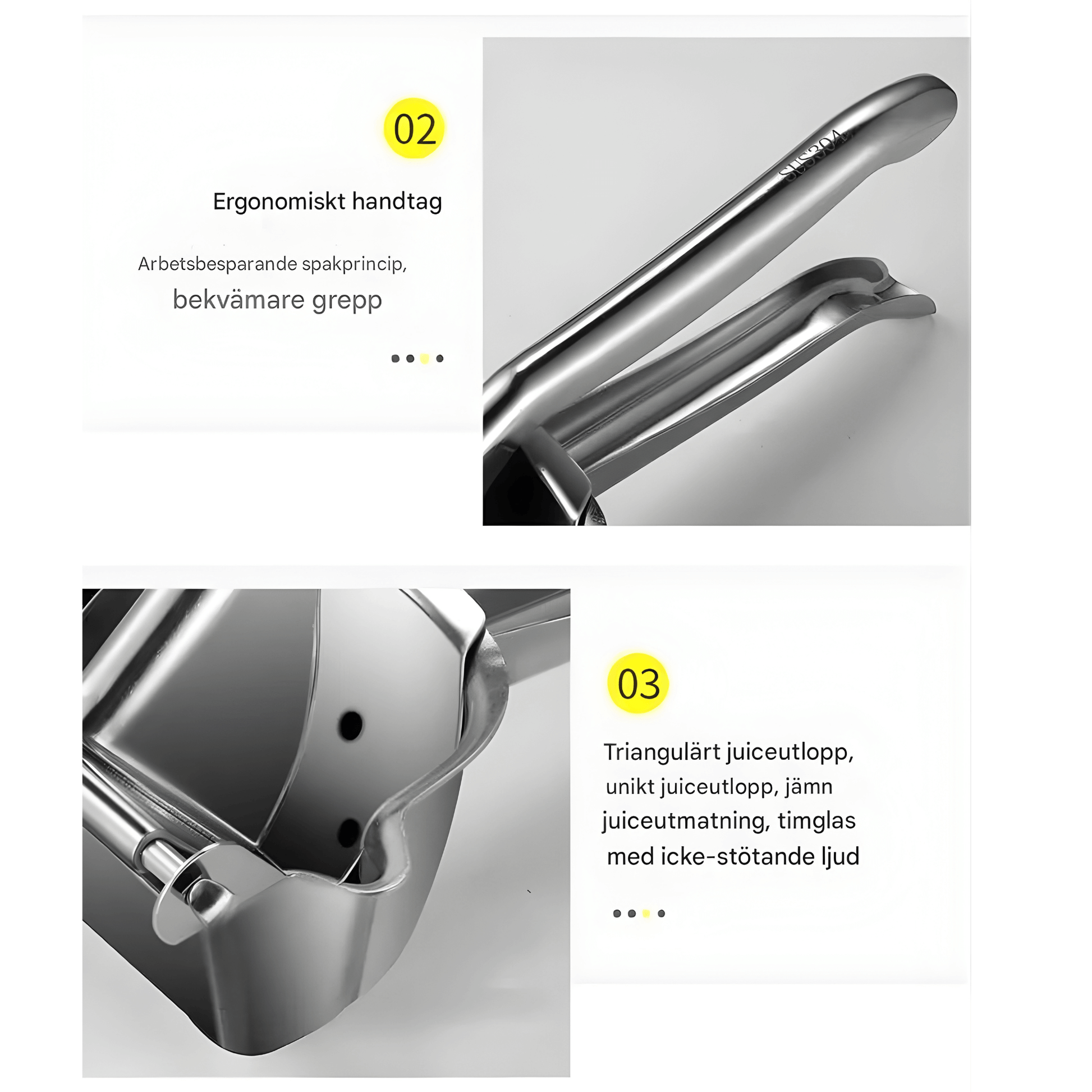 - 🍋 Design à faible effort – le principe de levier peut contribuer à une pression plus efficace