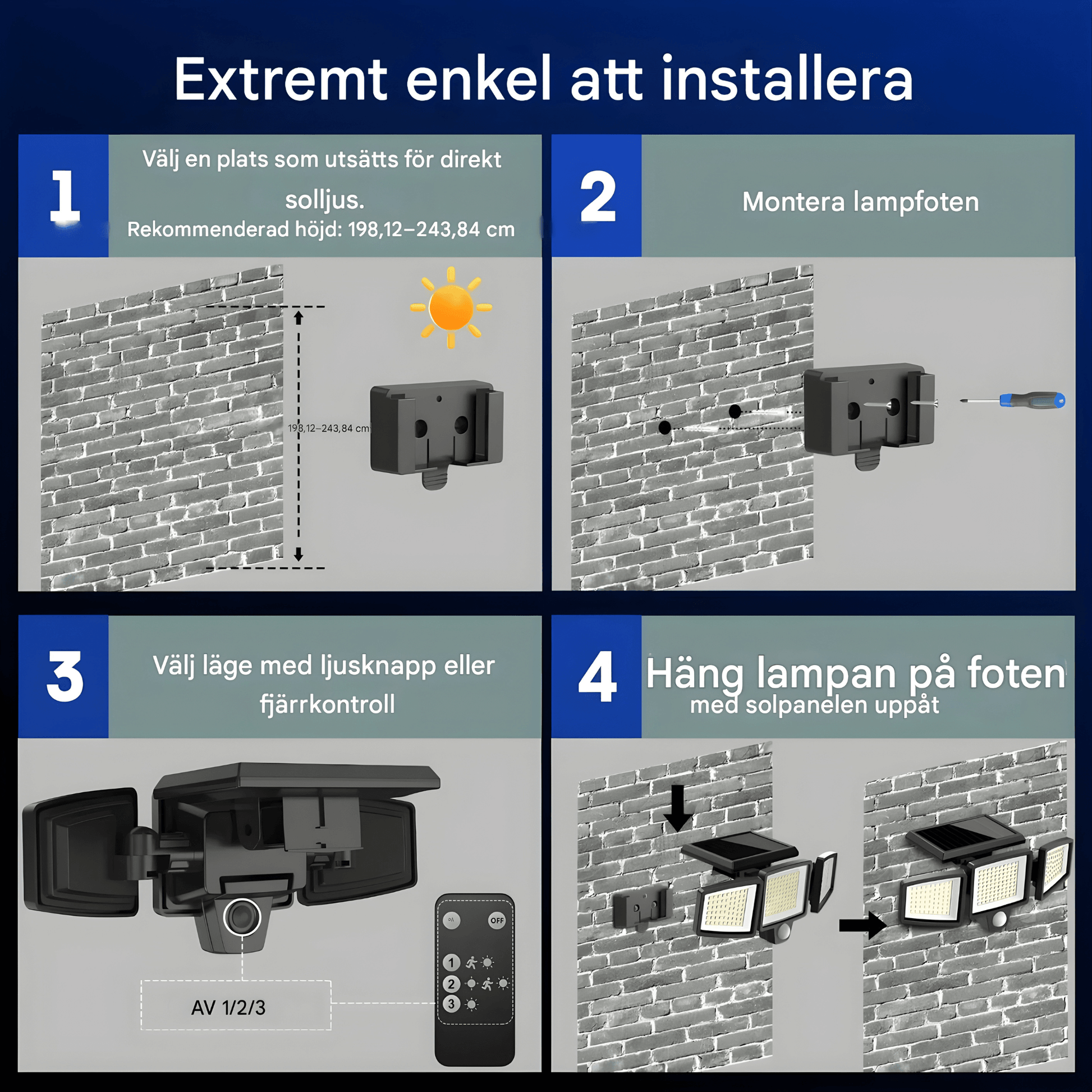 - Installez le support mural et accrochez la lampe avec le panneau tourné vers le haut.