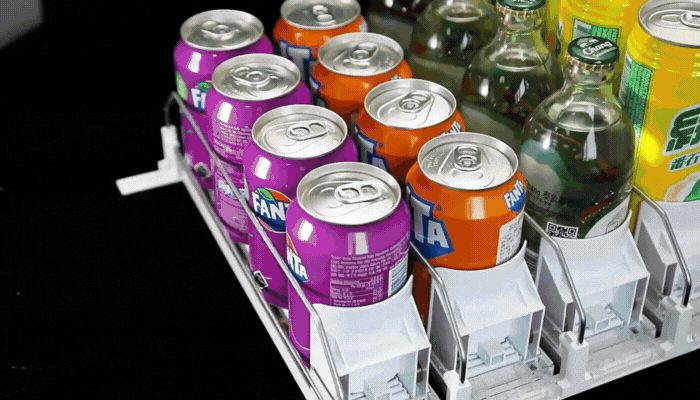 - 🔄 Självskjutande design – drycker glider automatiskt framåt när en tas bort