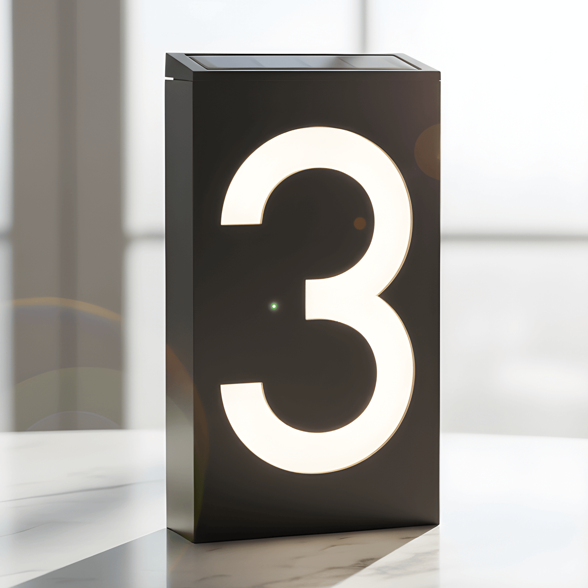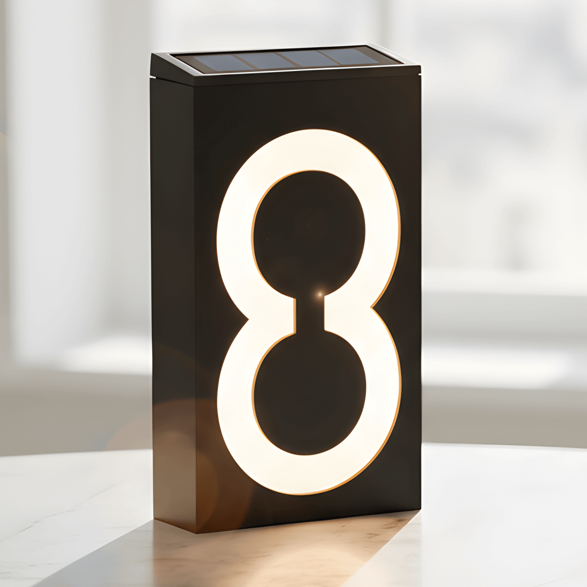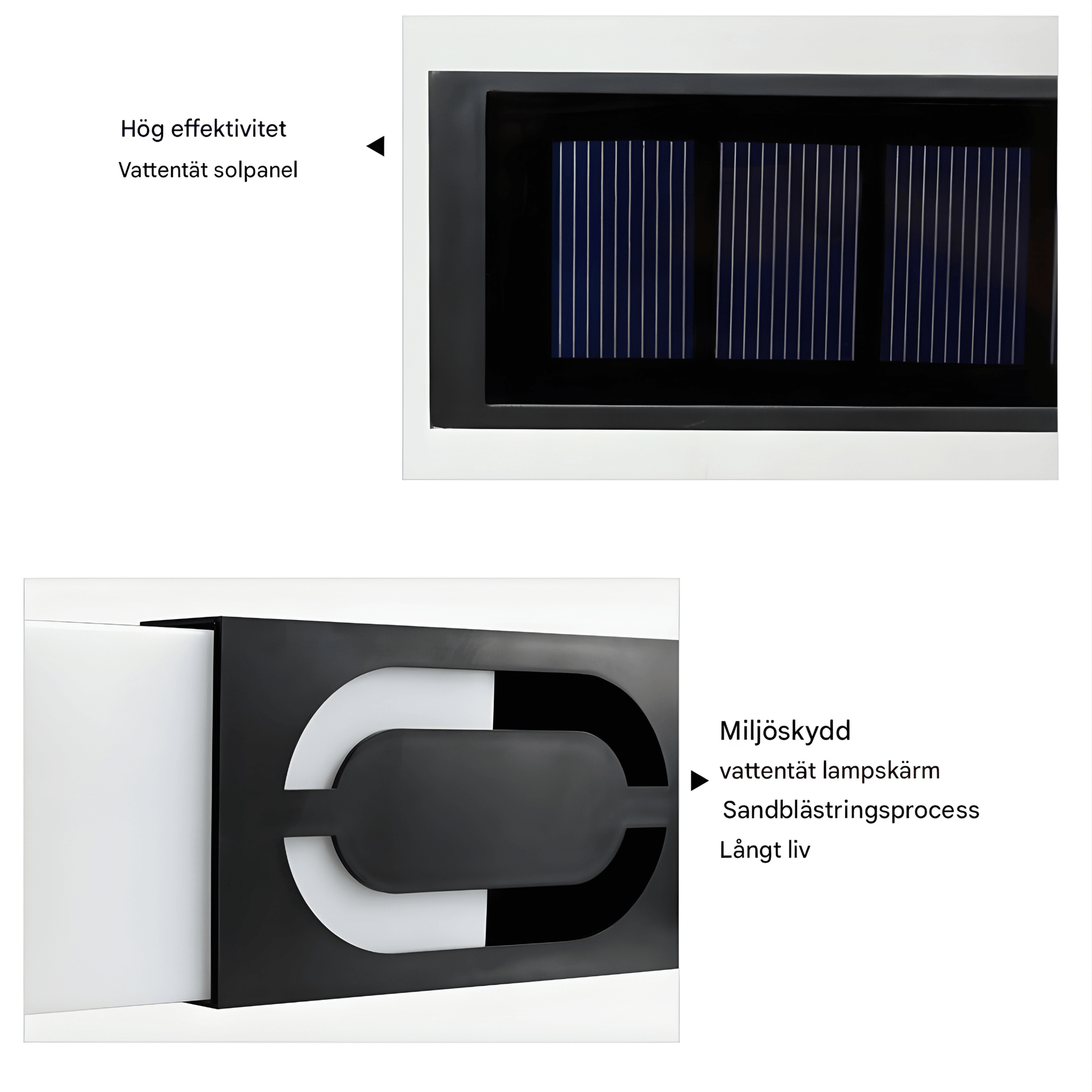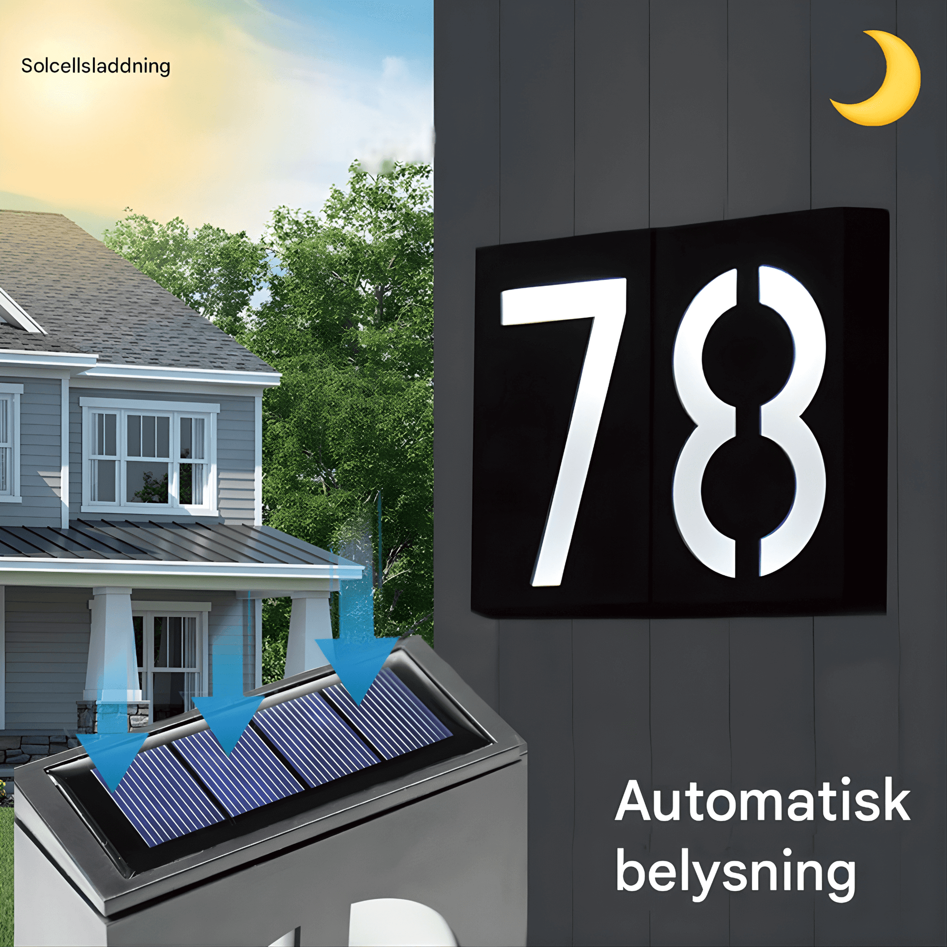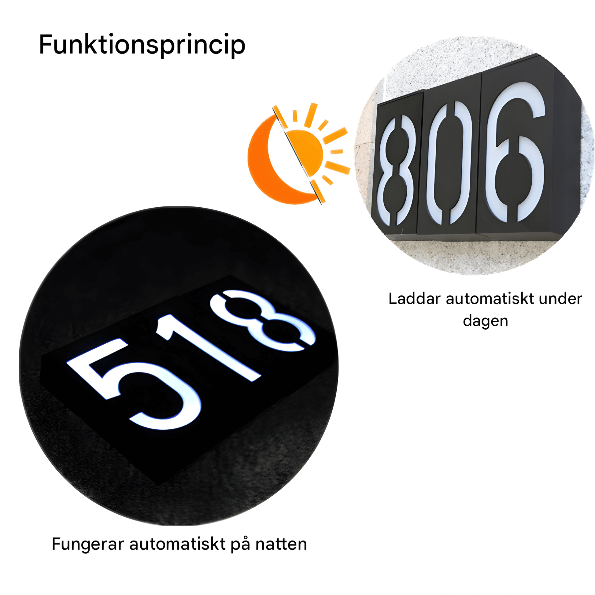 SOLENN – Solcellsdriven LED-Husnummerskylt med Automatisk Belysning & Vattentätt Hölje