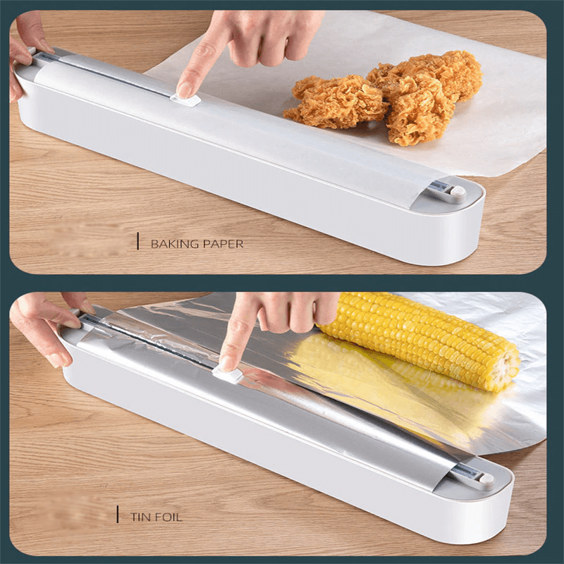 Med sin enkla användning, mångsidiga design och högkvalitativa material kan denna oumbärliga köksaccessoar hålla plastfolie, bakplåtspapper och aluminiumfolie, vilket gör matförberedelse och förvaring enkel.