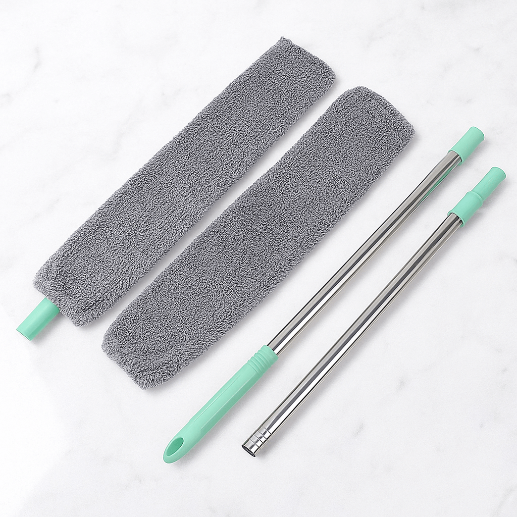 Detta dammverktyg har ett avtagbart handtag och böjbara mikrofiberområden, vilket gör det enkelt att rengöra olika platser. Oavsett om du behöver nå höga tak, trånga hörn eller intrikata utrymmen kan verktyget justeras för att passa dina rengöringsbehov. Det ger flexibilitet och bekvämlighet, vilket gör din rengöringsrutin mer effektiv.