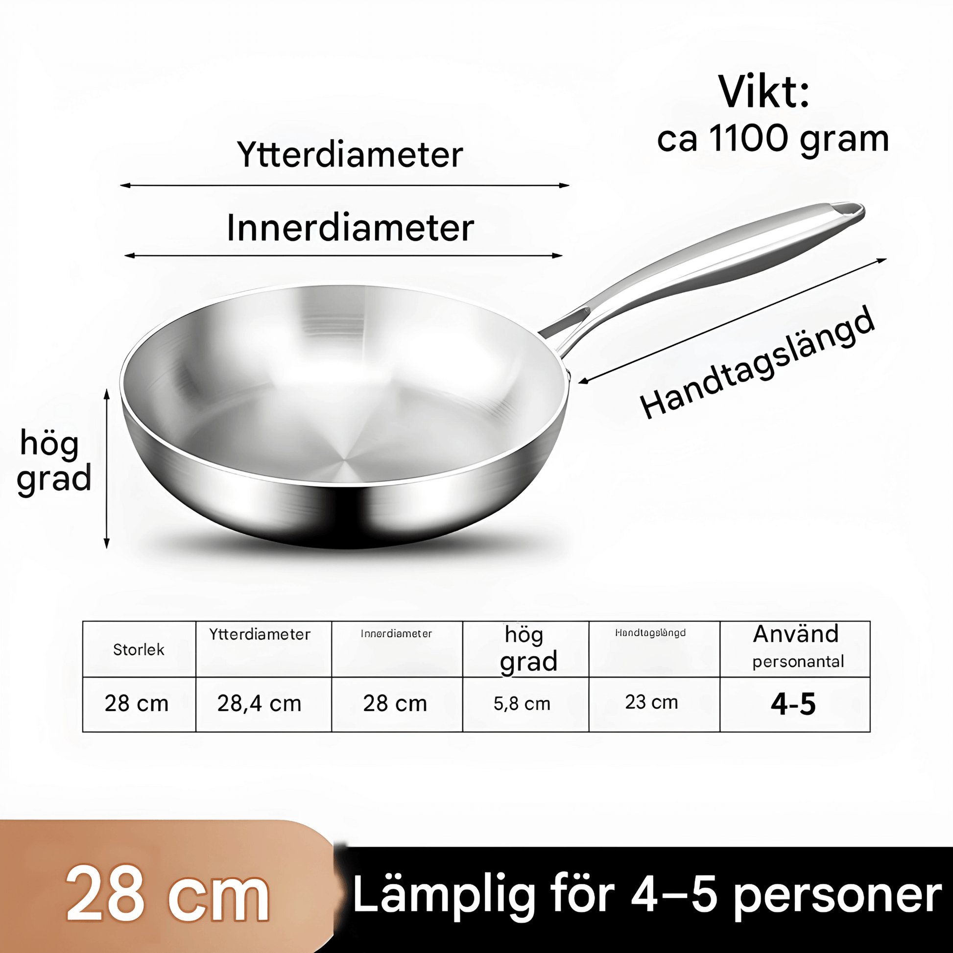 CHARLIE – Rostfri Stekpanna i 316 Stål med 3-Lager Konstruktion för Induktion & Gas
