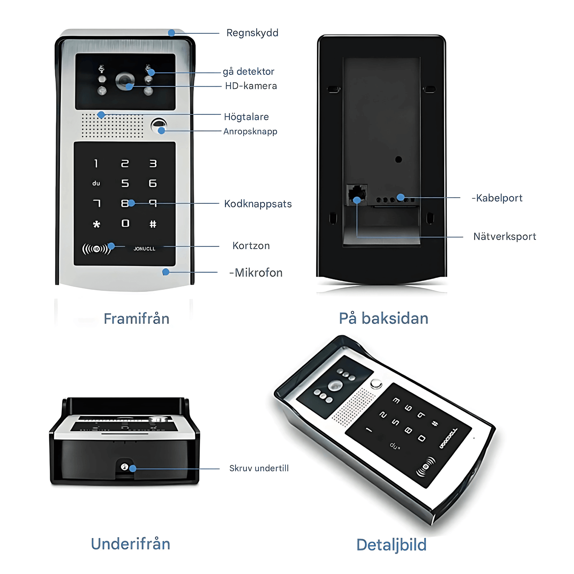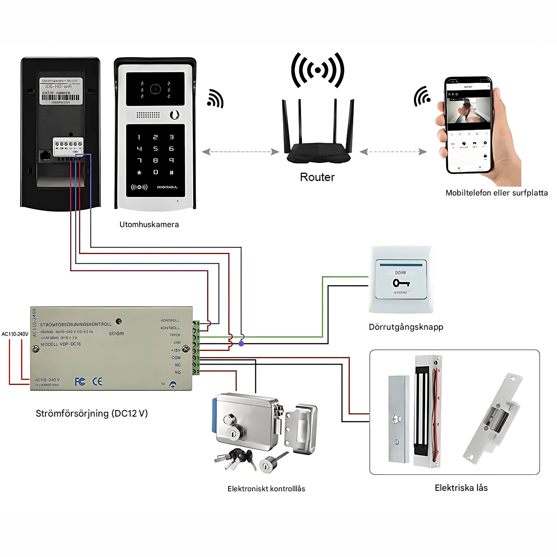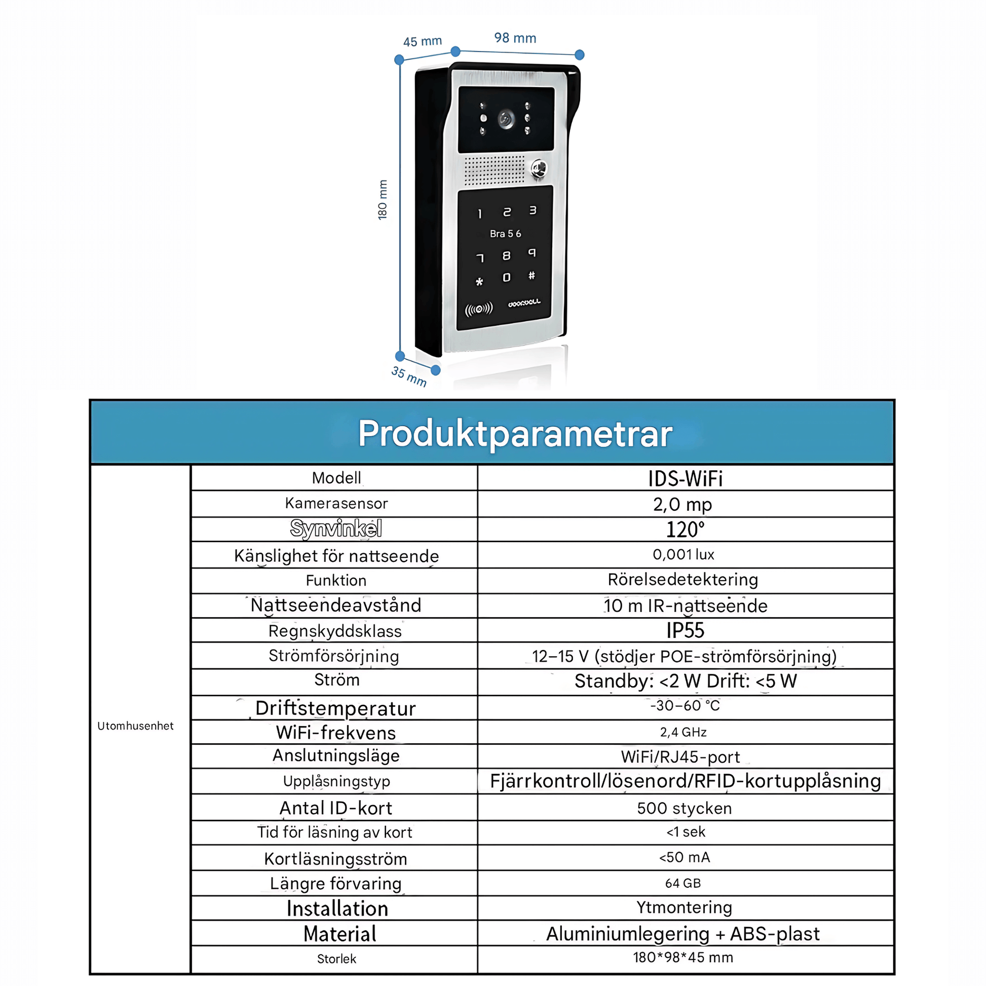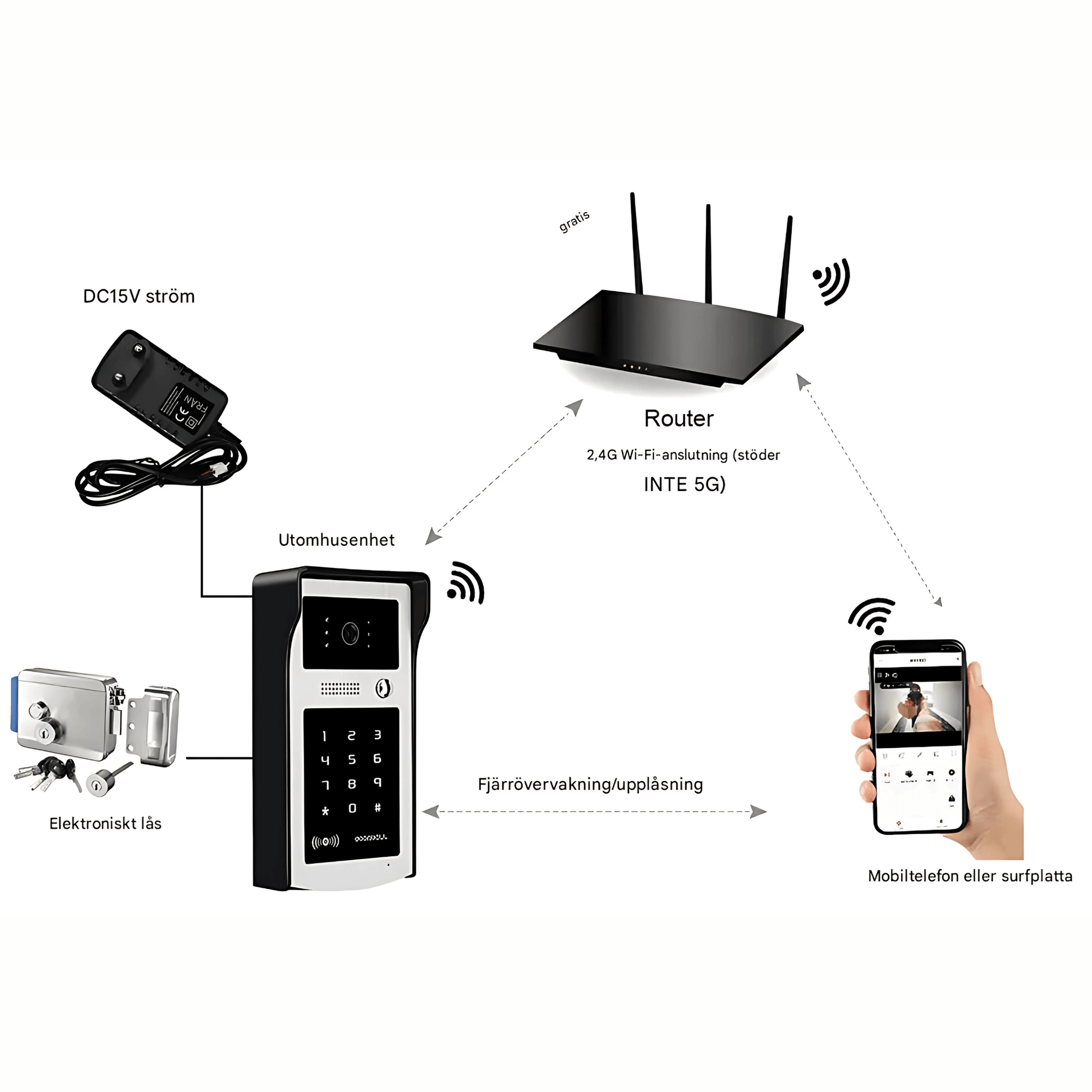 • 1 st Utomhusenhet (kamera + kodlås)