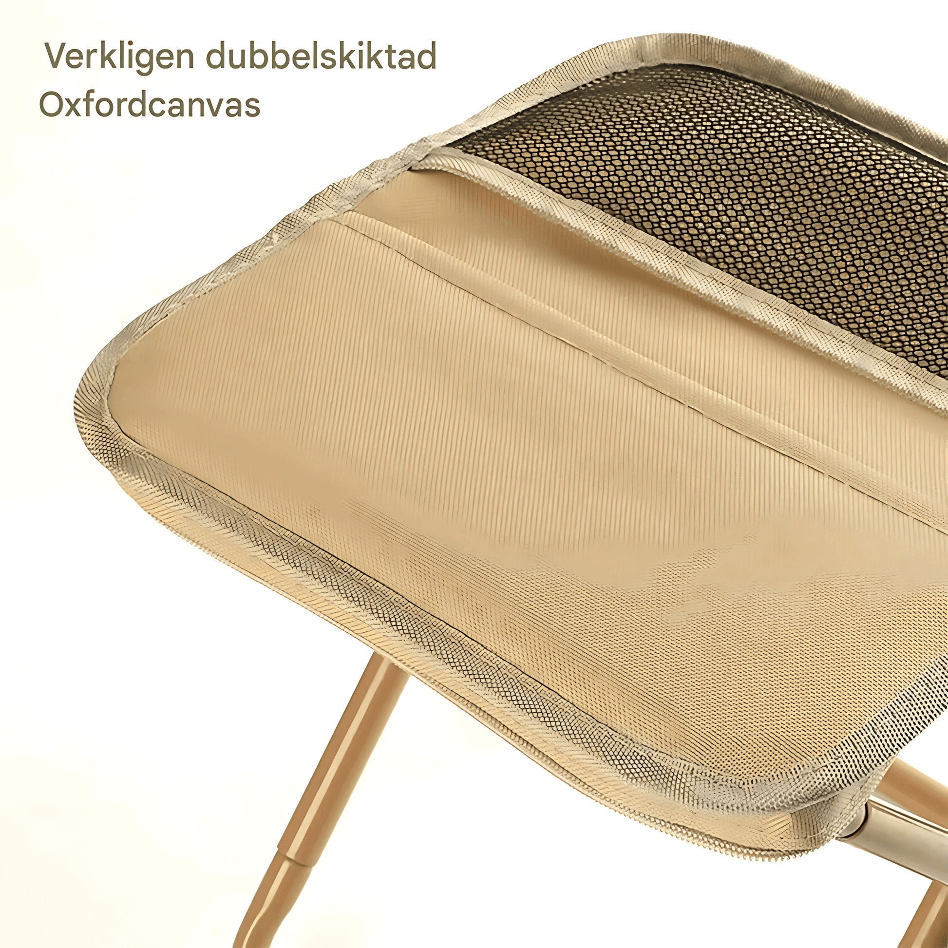 Tillverkad med lätt aluminiumram som kan ge en stabil grund – trots låg vikt. Enkel att bära men tillräckligt robust för att sitta på under kortare stunder.