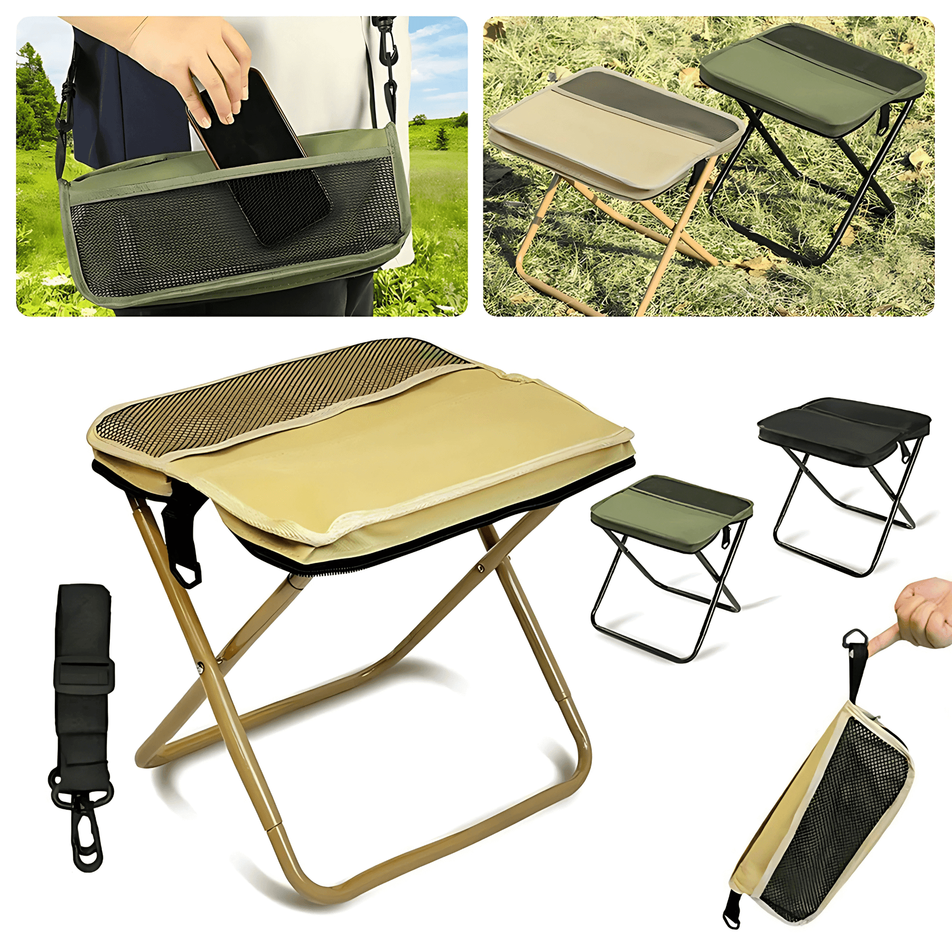 FoldSeat - Kompakt Hopfällbar Pall med Bärrem och Väderbeständig Dyna för Resor, Camping & Vardag