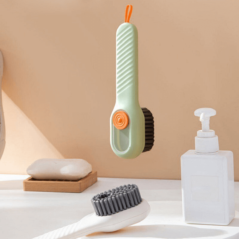 Denna rengöringsborste har en tryckmekanism för automatisk vätskeavlastning, vilket gör den otroligt enkel och bekväm att använda. Tryck bara på knappen för att frigöra rengöringsvätskan på den yta du vill rengöra, vilket sparar tid och ansträngning.