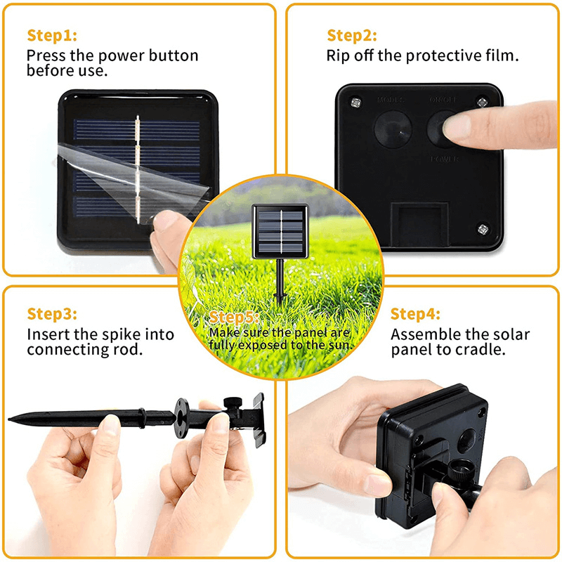Led-Slingan som laddar under dagen och omvandlar solljus till elektrisk energi. Med en snabb laddning på 6-8 timmar kan de ge upp till 8-14 timmars förtrollande belysning på natten, vilket gör dem energieffektiva och kostnadseffektiva.
