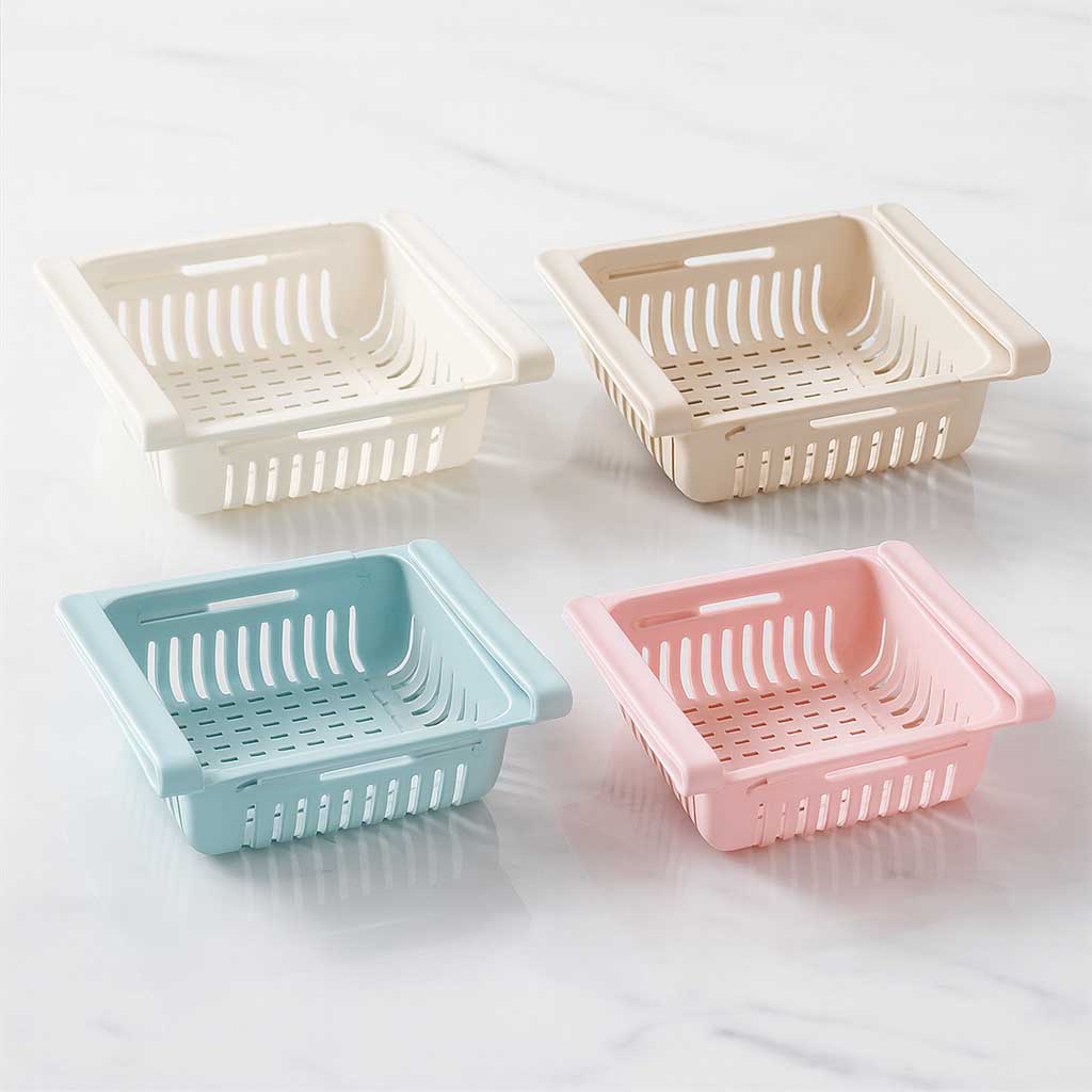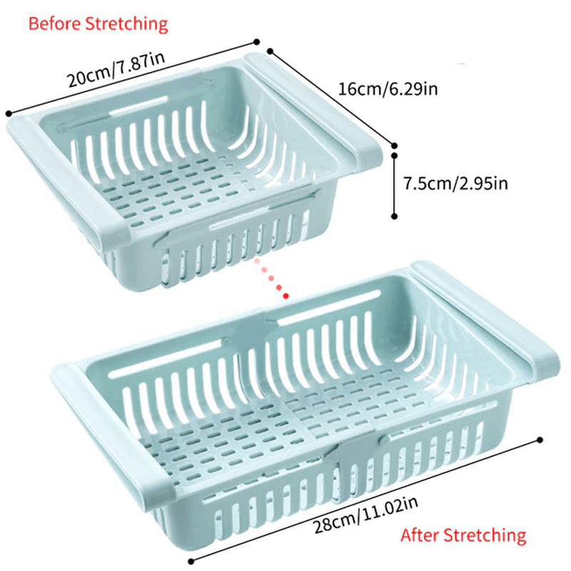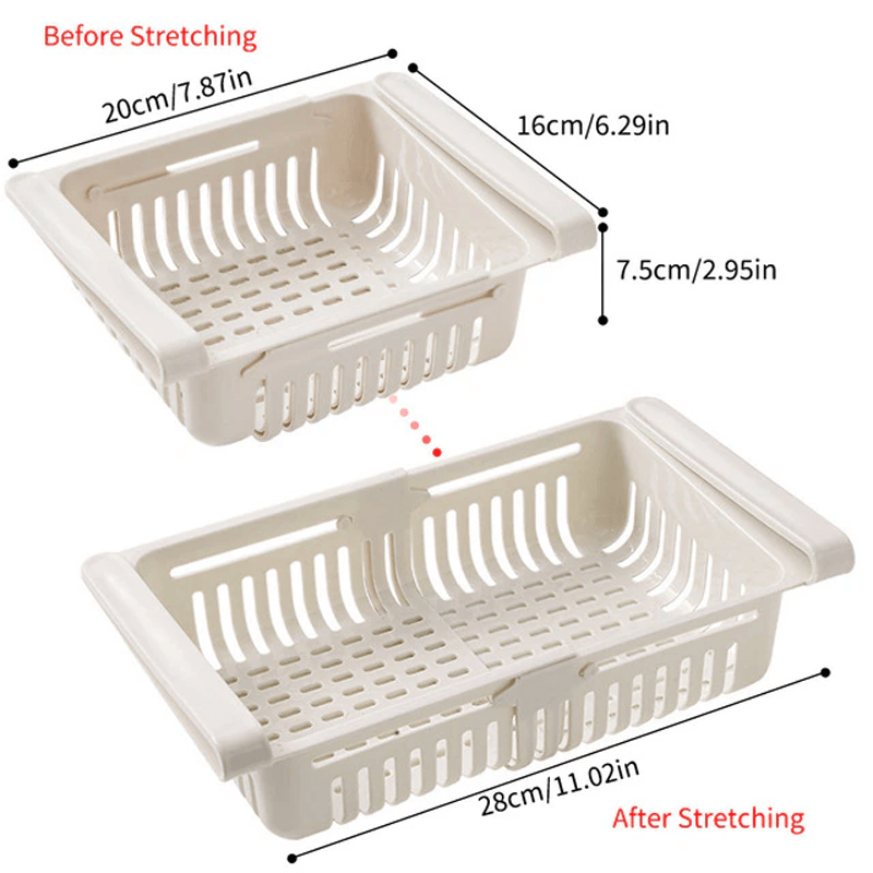 Tillåter dig att fullt ut nyttja det tillgängliga utrymmet i ditt kylskåp. Dess töjbara design kan justeras för att passa olika storlekar av föremål och möjliggör en snygg organisering av saker och förhindrar att de tar upp onödigt utrymme.